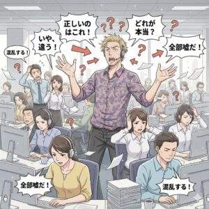 問題となった人物は、セキュリティ分野での実務経験や体系的な知識を持っていません。しかし、会議やブリーフィングの場では、自分より上位の立場の人間が説明している最中であっても黙っていられず、必ず何かを付け加えようとします。その発言の多くは、一次情報や公式な手順に基づくものではなく、「どこかで聞いた話」「一般論としてもっともらしく聞こえる話」に依拠しています。