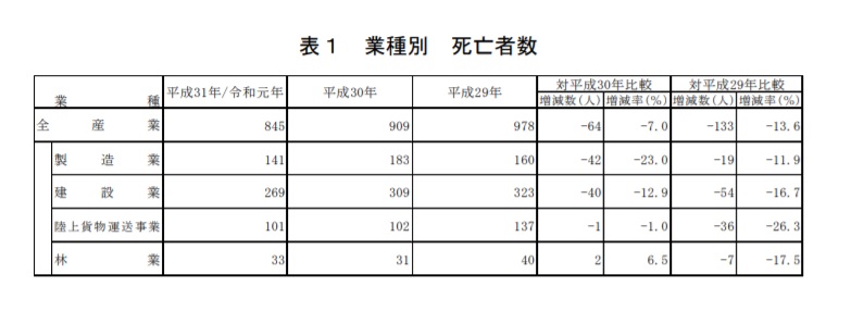 このように書くと、とても危険を伴う仕事のように思われてしまいますが、ボディガードは他の仕事と比較して特別危険な仕事というわけではありません。厚生労働省が発表した「平成31年/令和元年労働災害発生状況の分析等」の業種別死亡災害発生状況によると建設業が最も多く、平成31年/令和元年の死亡者は269名となっています。