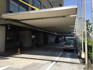 ホテルに到着をしたら、まずチェックするのはホテルの出入口/車寄せです。VIPを受けれ入れがしっかりしている帝国ホテルのようなホテルの場合には、VIP専用の特別な出入口/車寄せが設けられていますので、まずそのような出入口/車寄せの有無をホテルの担当者に確認し、あればそこのチェックも忘れてはいけません(このような出入口はVIPの宿泊がない場合には閉まっていることが多いです)。東京の敷地面積が小さなホテルの中には、地上レベルにお忍びのVIPが利用できる出入口/車寄せがなく、地下駐車場に設けられた出入口を勧めてくるところがあります。地下は出入りのポイントが絞りやすくチョークポイントになりやすいです。特に地下へ/からのスロープがまっすぐではなくループ状の場合にはスピードが落さざるを得ないため特に特に注意が必要です。地下入り口をVIPの出入口の選択肢に入れる場合には、車列に車高が高い車があっても問題がないように高さ制限の確認も忘れてはいけません。地上レベルの出入り口を使用する際は、万が一の際に車(列)が止まらずにまっすぐ通り抜けが出来るか、もしくはサッとマヌーバー(Maneuver)が出来るスペースがある車寄せを確保できるようにしたいものです。