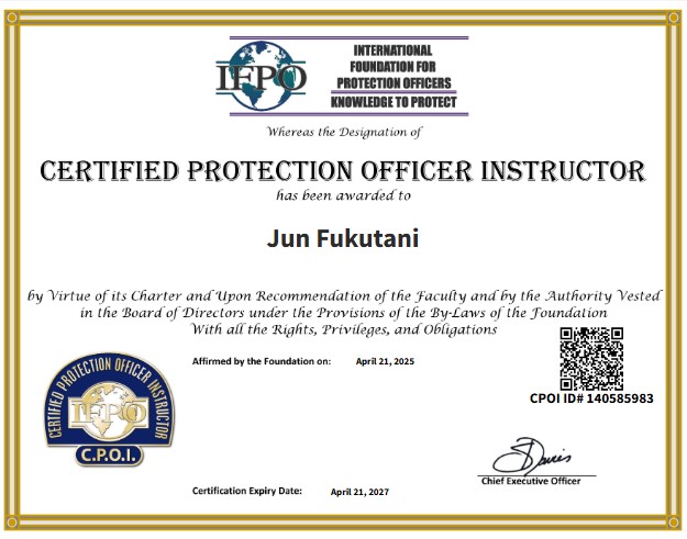 残念なお知らせがあります。これまで複数の方から CPO(Certified Protection Officer)コース開催に関するお問い合わせをいただいておりましたが、本コースの開催を断念する判断に至りました。 理由は明確です。IFPO(International Foundation for P […]